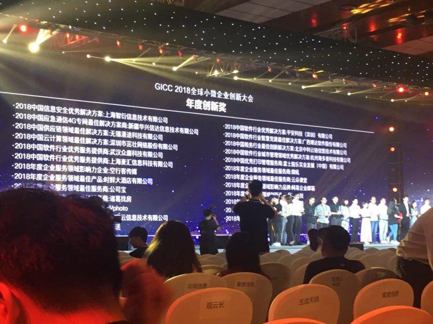 无锡漫途科技有限公司在第二届GICC 2018全球小微企业创新大会上荣获“2018中国供应链领域最佳解决方案”奖。