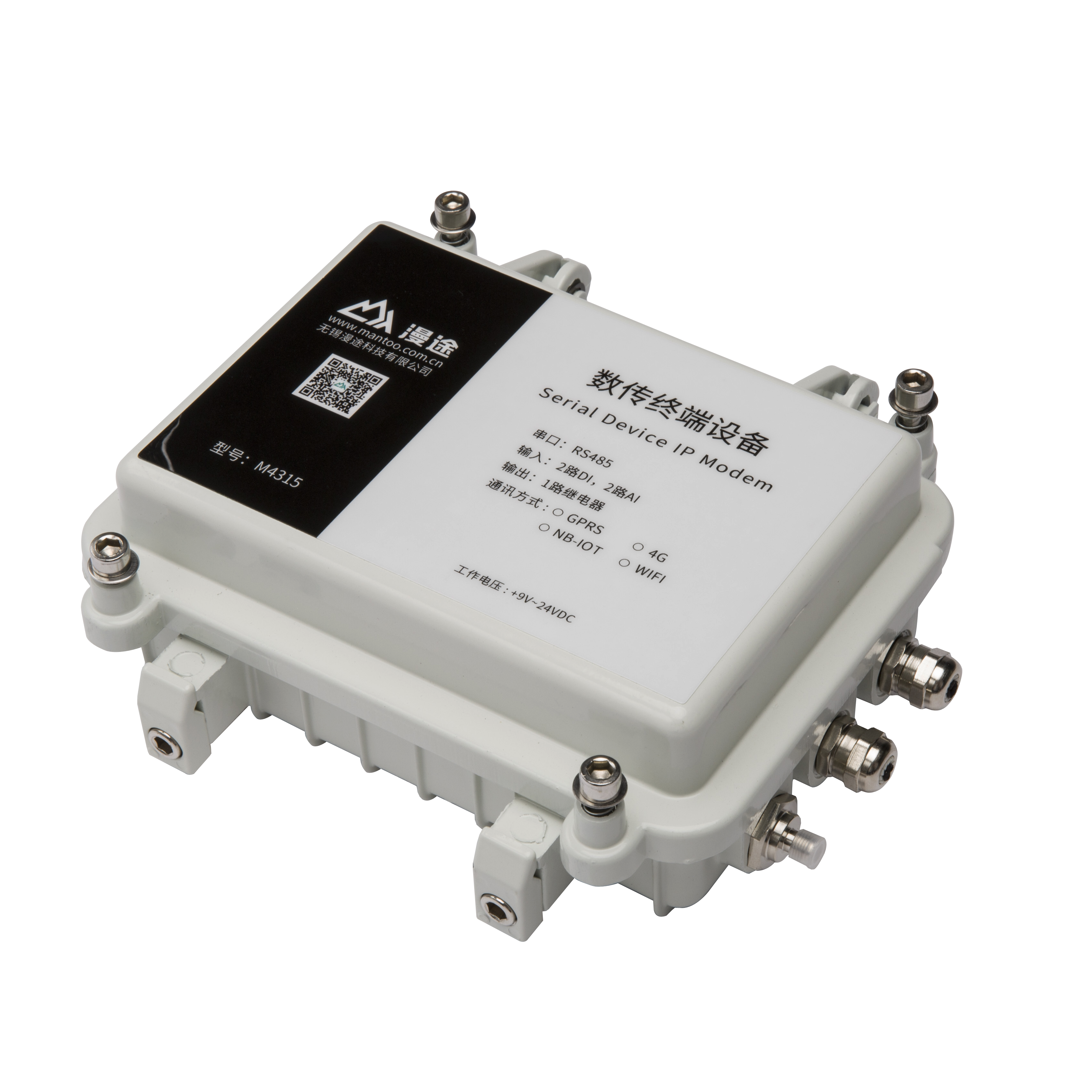 MTRM4-4-1A(M4315集成了2路模拟信号采集、2路开关量输入、1路继电器输出和无线数据通信于一体的高性能测控装置,可以直接接入各种传感器、标准变送器信号、仪表等输出的模拟信号、电平信号、干触点等,并且采用IP67等级防护,是恶劣环境实施无线测控的终端选择。